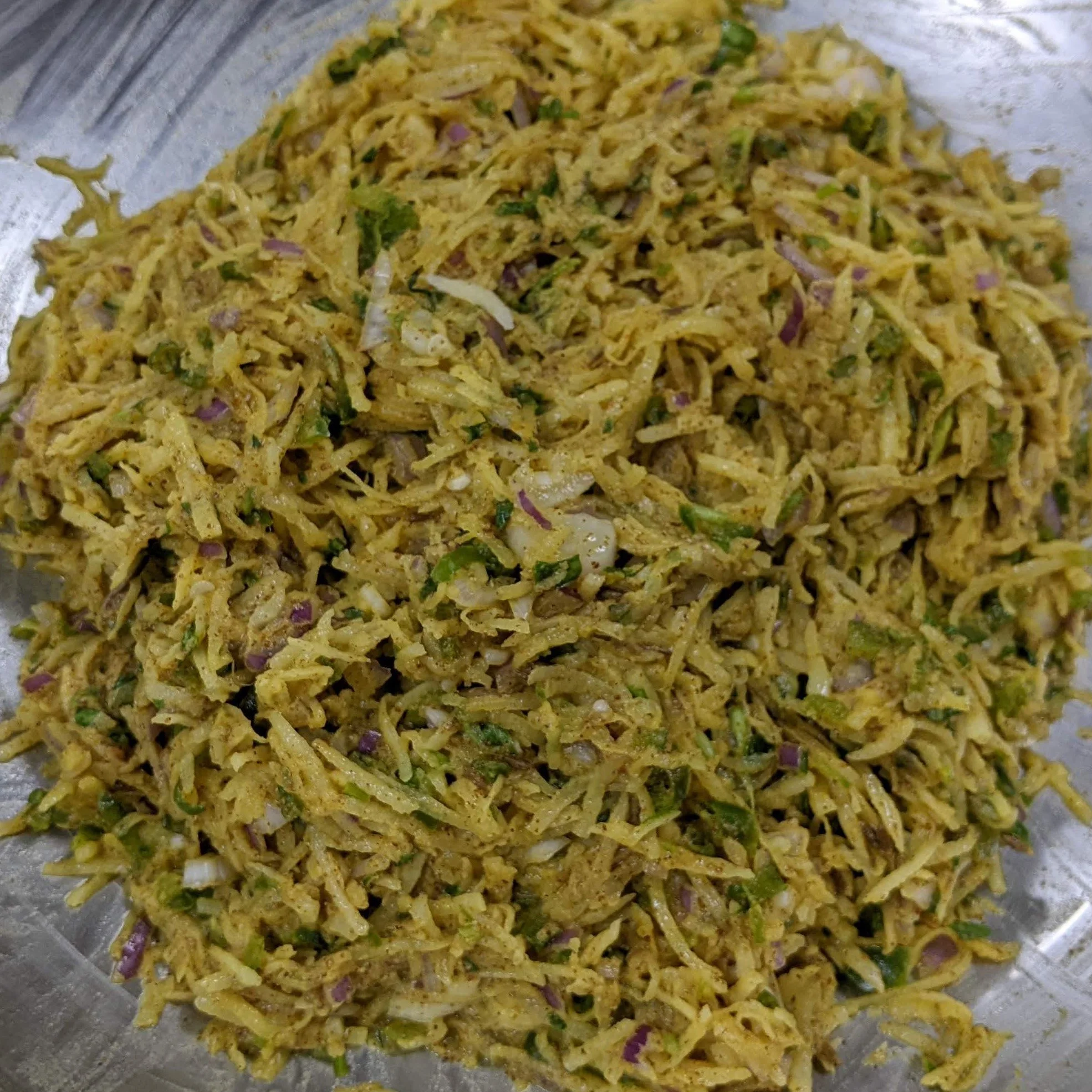 In a bowl take the grated aloo and add all the above ingredients and mix well.