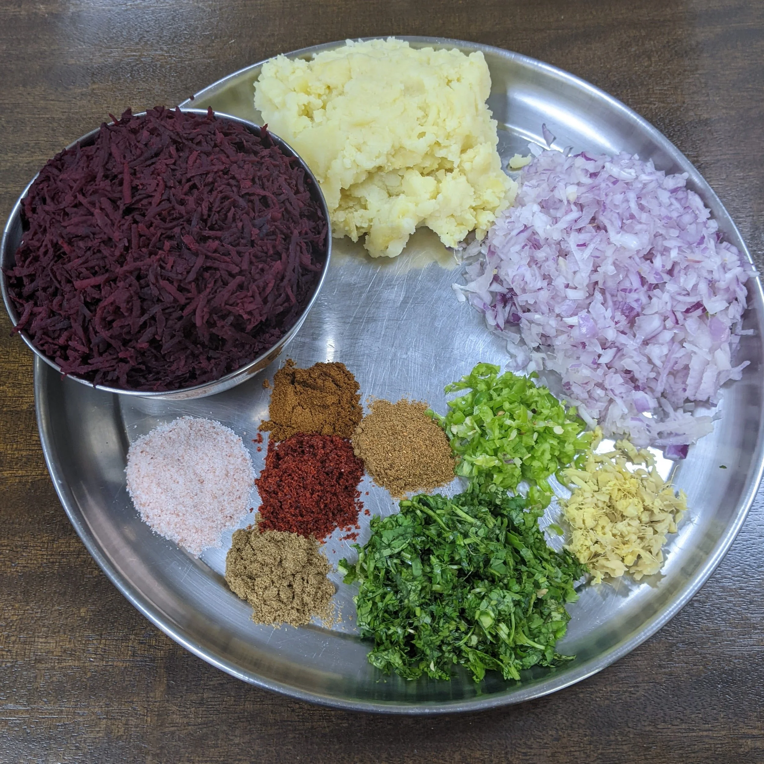 Take a bowl add the beetroot, and all the above ingredients. Give it a good mix.