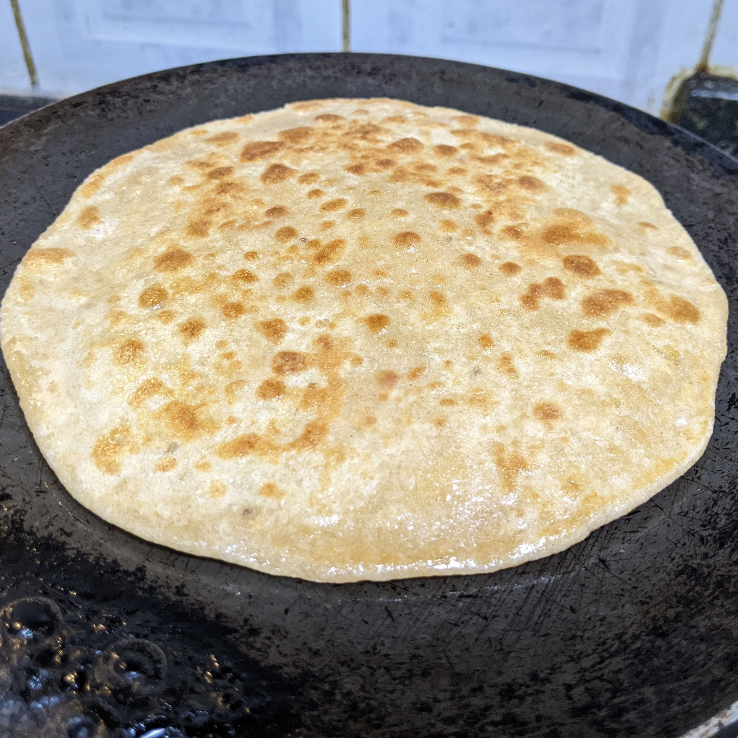 Heat a tawa then place the rolled paratha on it and cook on both sides applying oil till brown spots are seen all over.