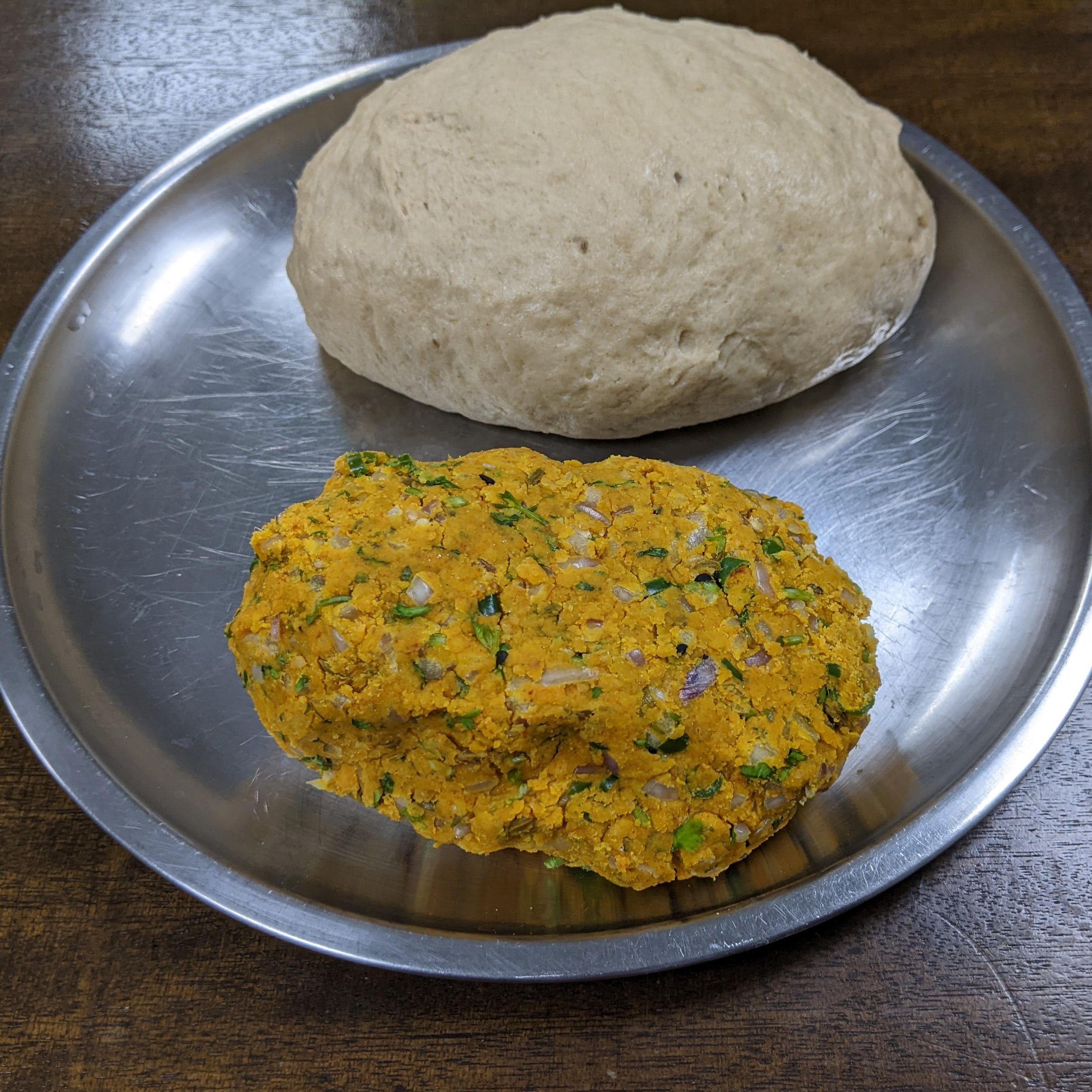 Mix all the ingredients of the filling together and bind it well to form a dough. Keep aside.