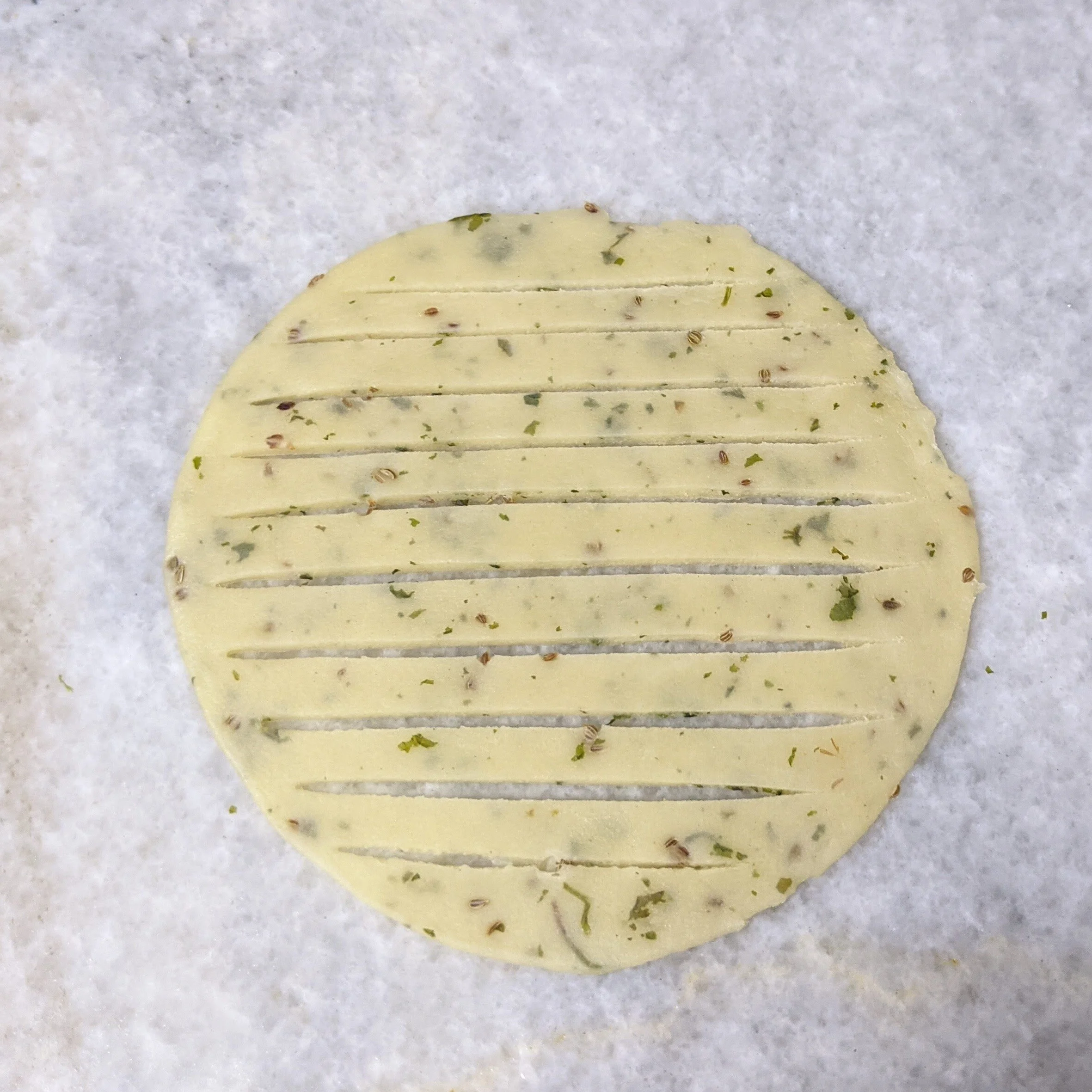 Slightly crush the carom seeds and kasuri methi on your palms and add it to the flour along with salt and mix well.