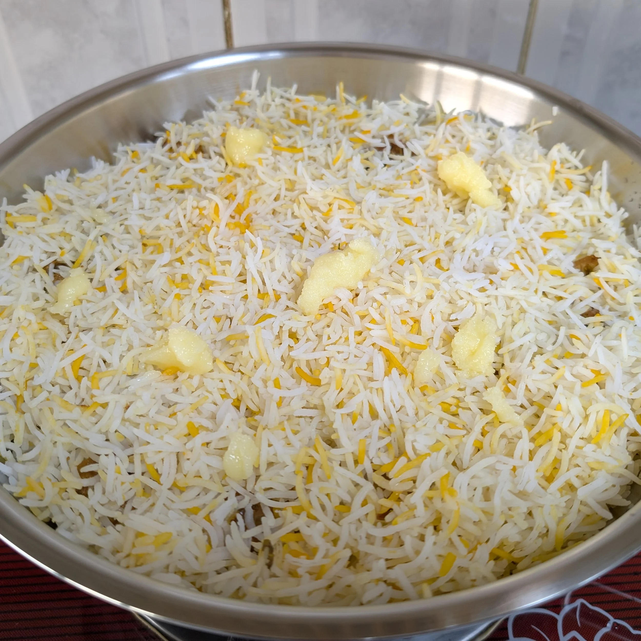 In a heavy based vessel add 1/3 cup oil then put half the quantity of the cooked rice then layer it with the kathal curry and spread it evenly. Cover the kathal with the remaining rice and sprinkle the kewra essence all over the rice with drops of ghee.