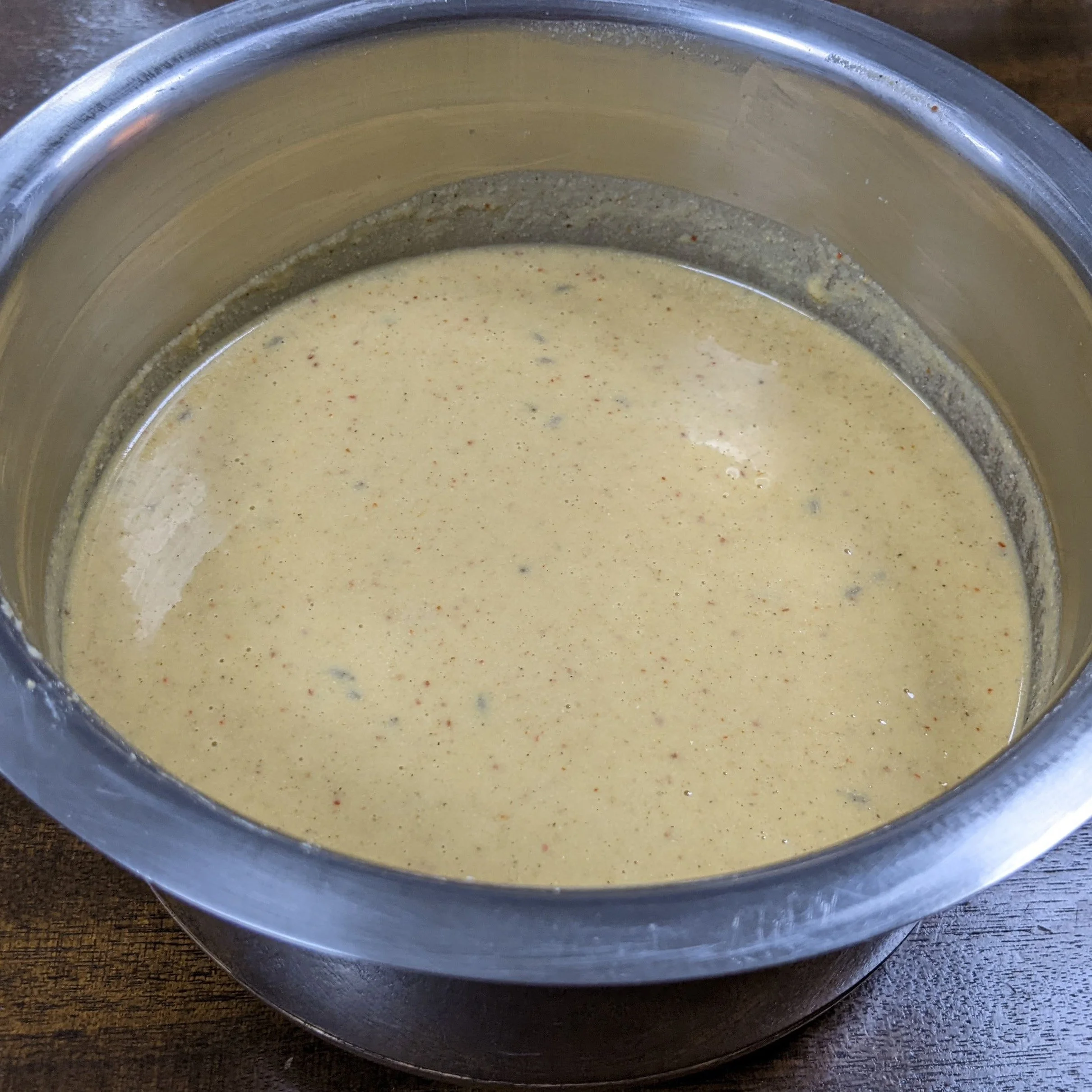 In a bowl add all the dry ingredients and mix well. Add water little by little to make a pouring consistency batter. Allow it to rest for 10 minutes.