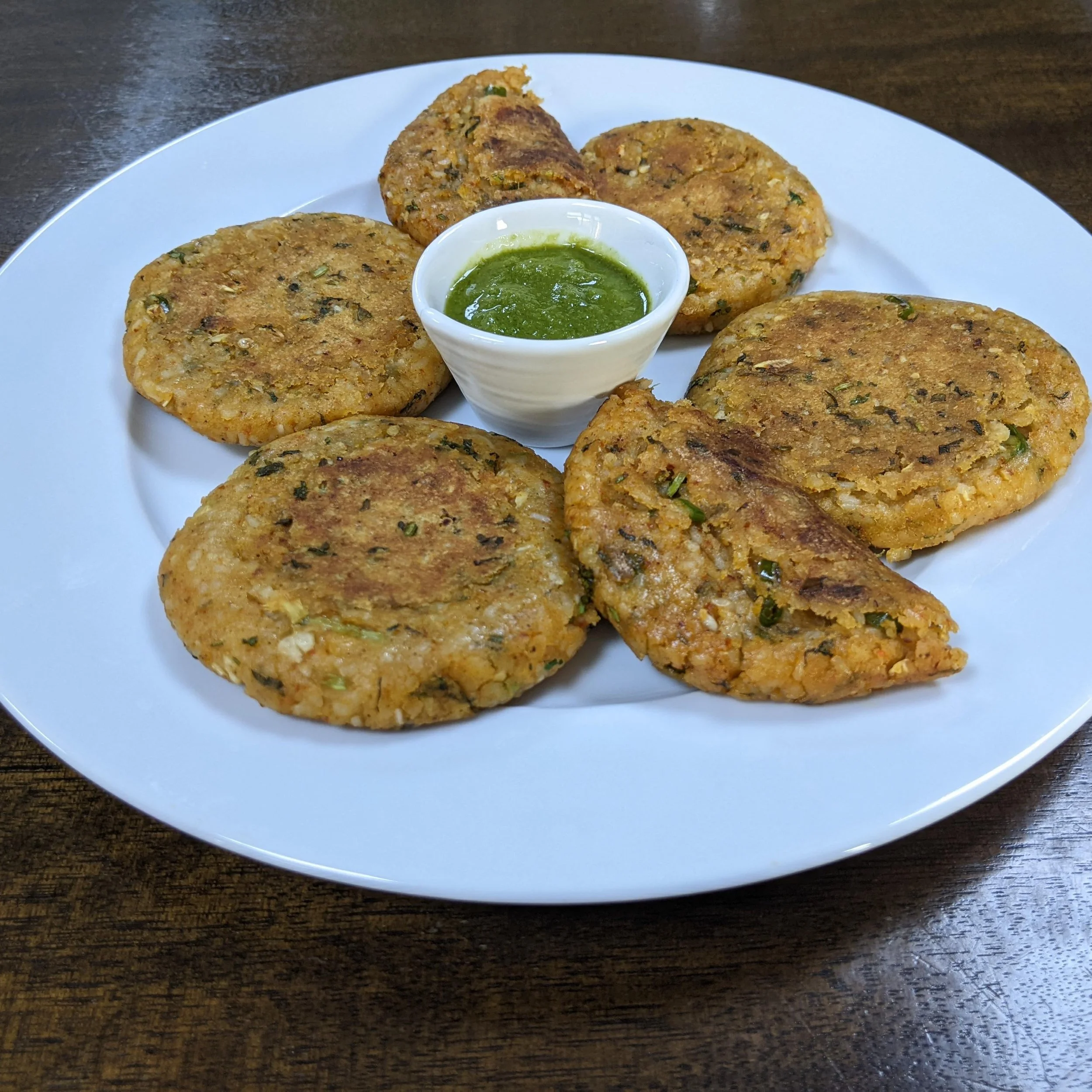 Heat a non stick tawa then grease it with 3-4 tbsp oil. Place the patties on it and cook on low flame on both sides till golden brown in colour. Remove in a plate.