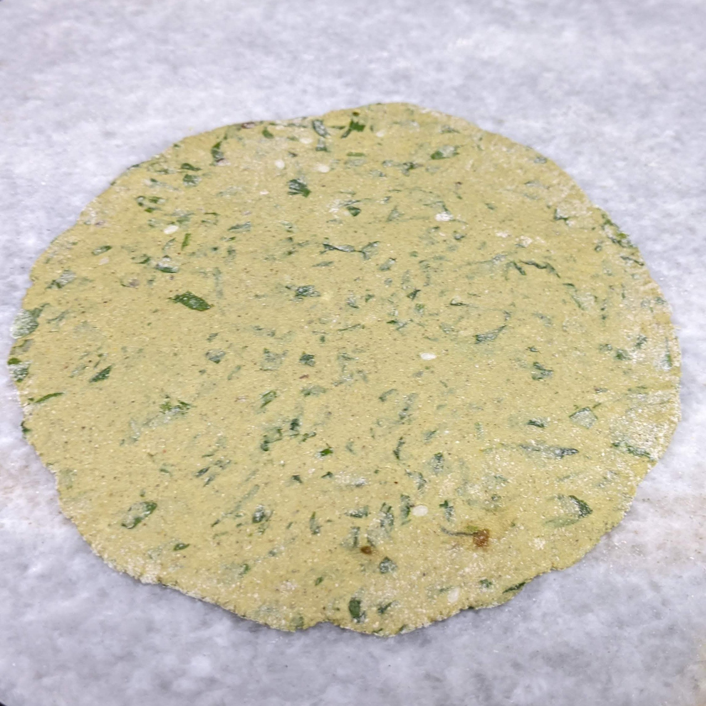 Dust a rolling board with some flour and place a dough ball on it. Lightly roll into a medium thickness chapati.If the edges are uneven you can cut it with a round cutter or with a lid of a steel box.