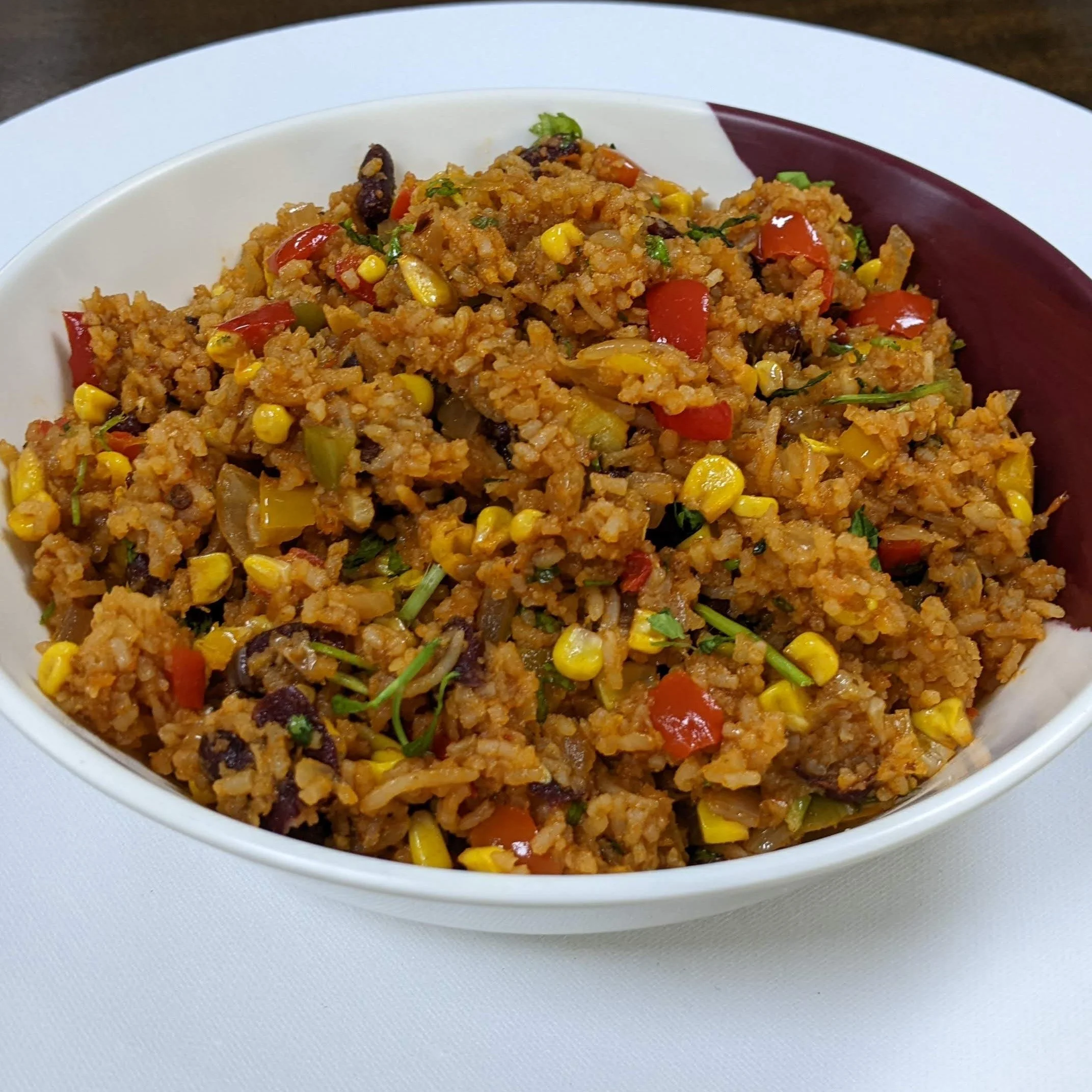 Then add the tomato paste, ketchup, all the spices and salt. Cook for 5 minutes on low flame then add the rice along with the water and slowly mix it so that the rice grains do not break.