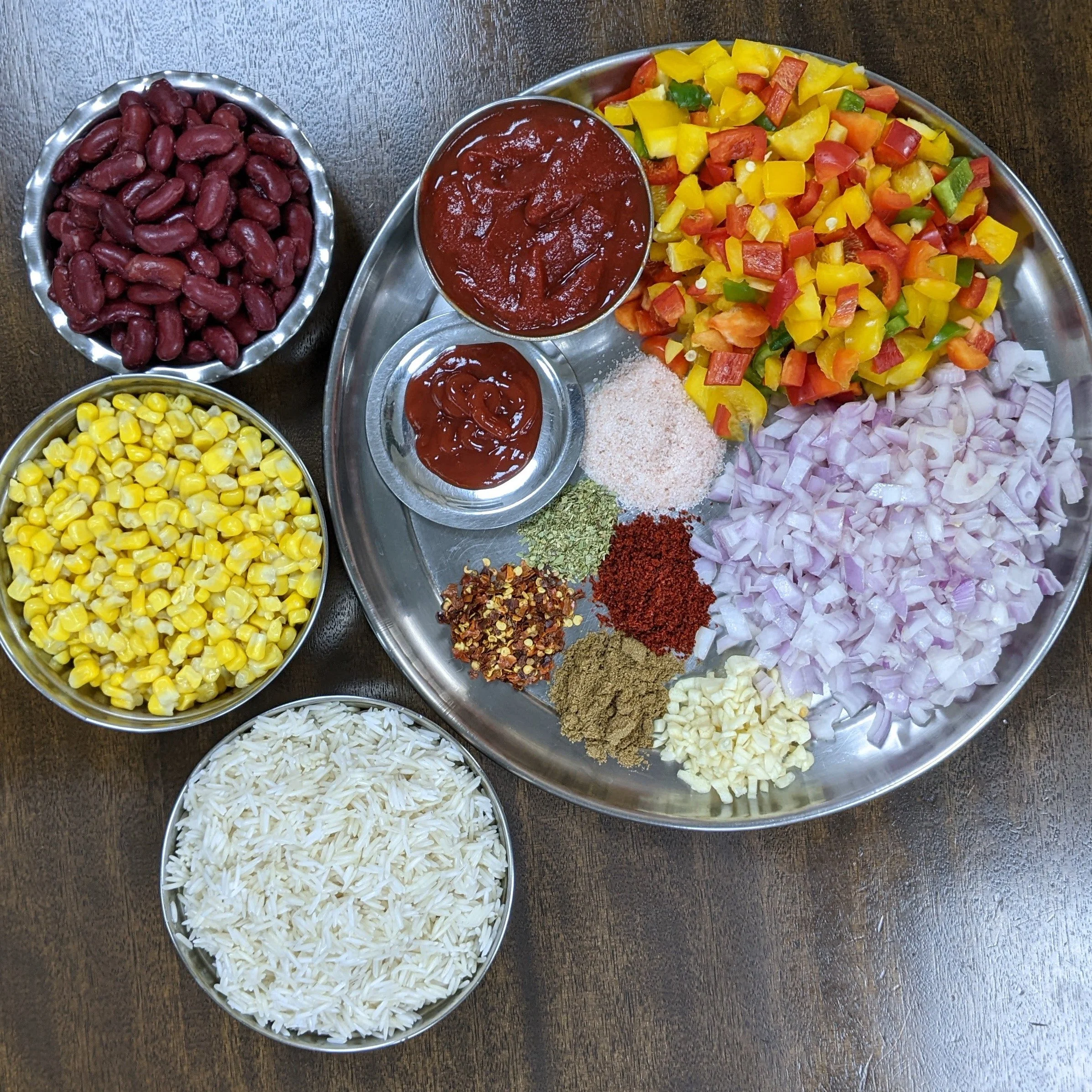 Drain the rajma and corn and wash with water to remove all the preservatives. Keep aside.
