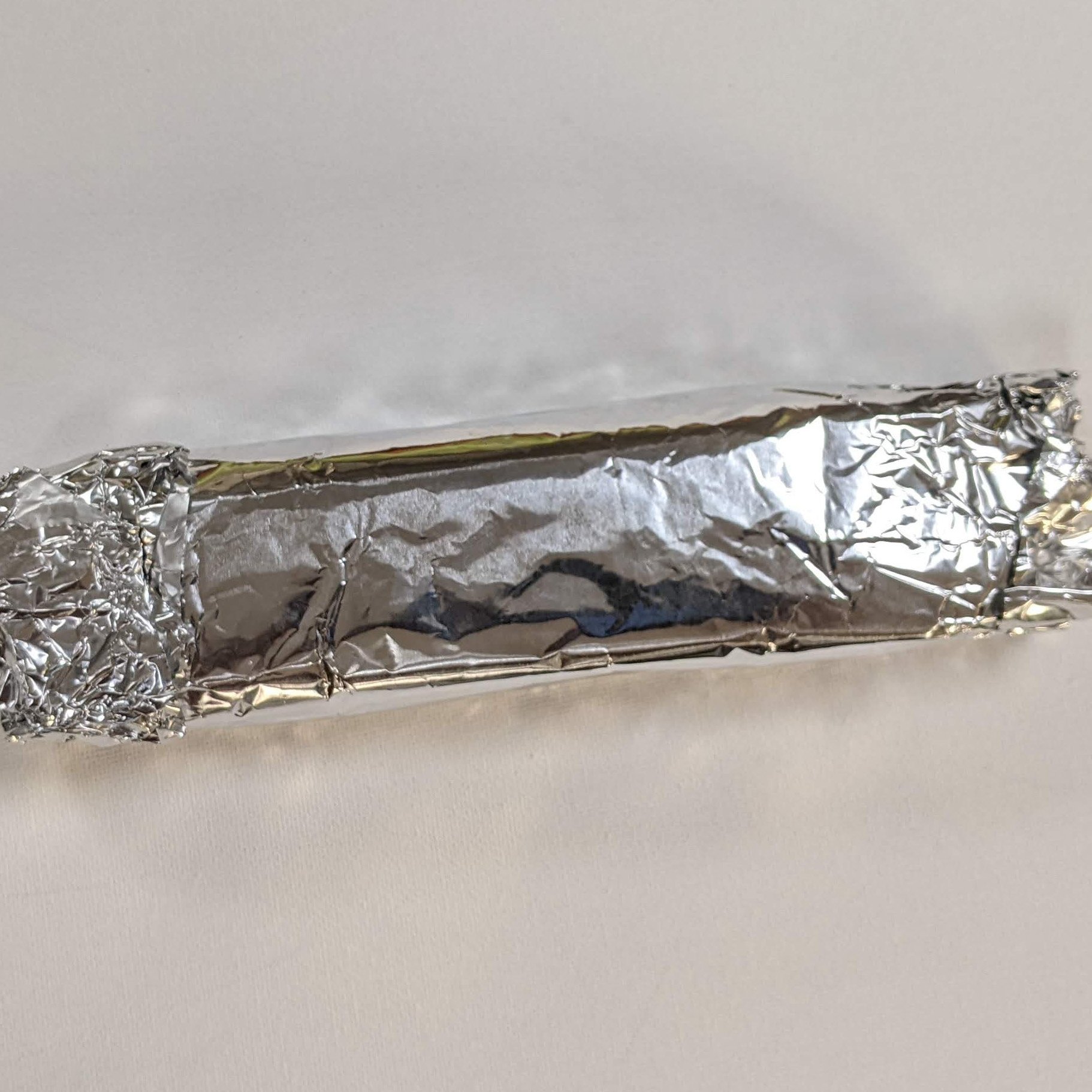 Take an aluminum sheet and place the log on it . Cover tightly and seal the ends.