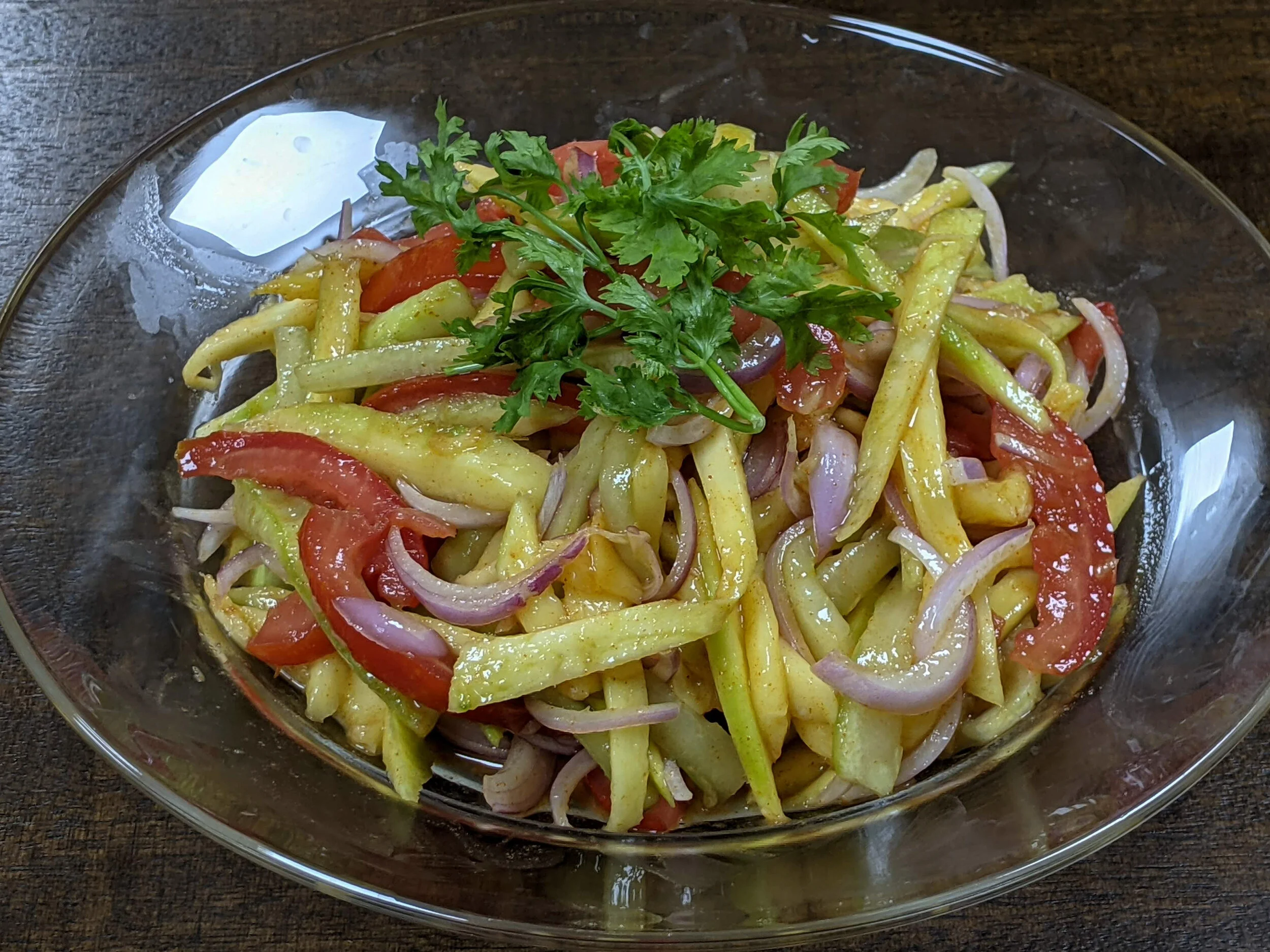 Enjoy this yummy chilled sweet and tangy Mango Salad .