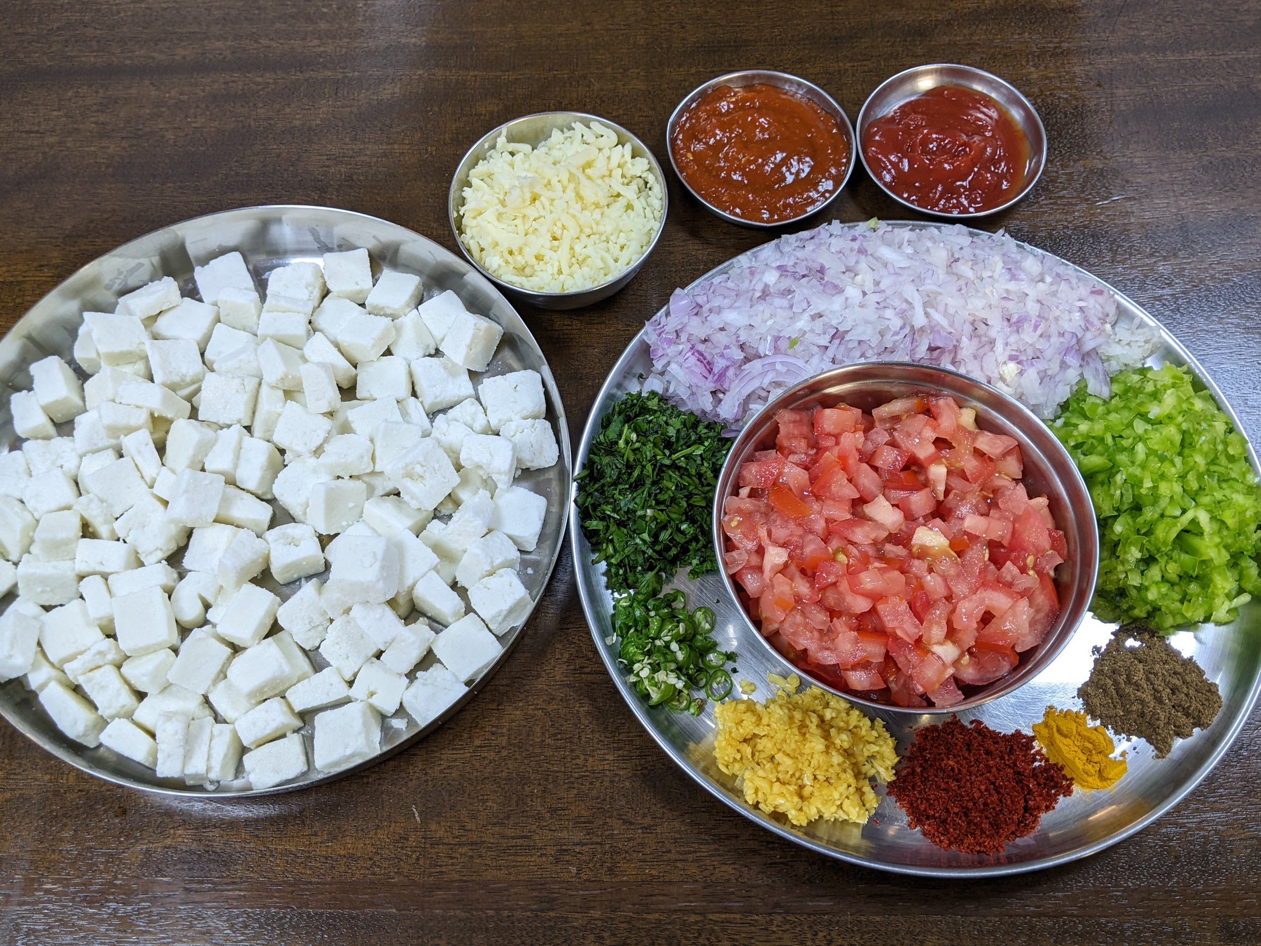 Cut all the burger buns from one side keeping the other end intact. With a spoon place some paneer in each bun.