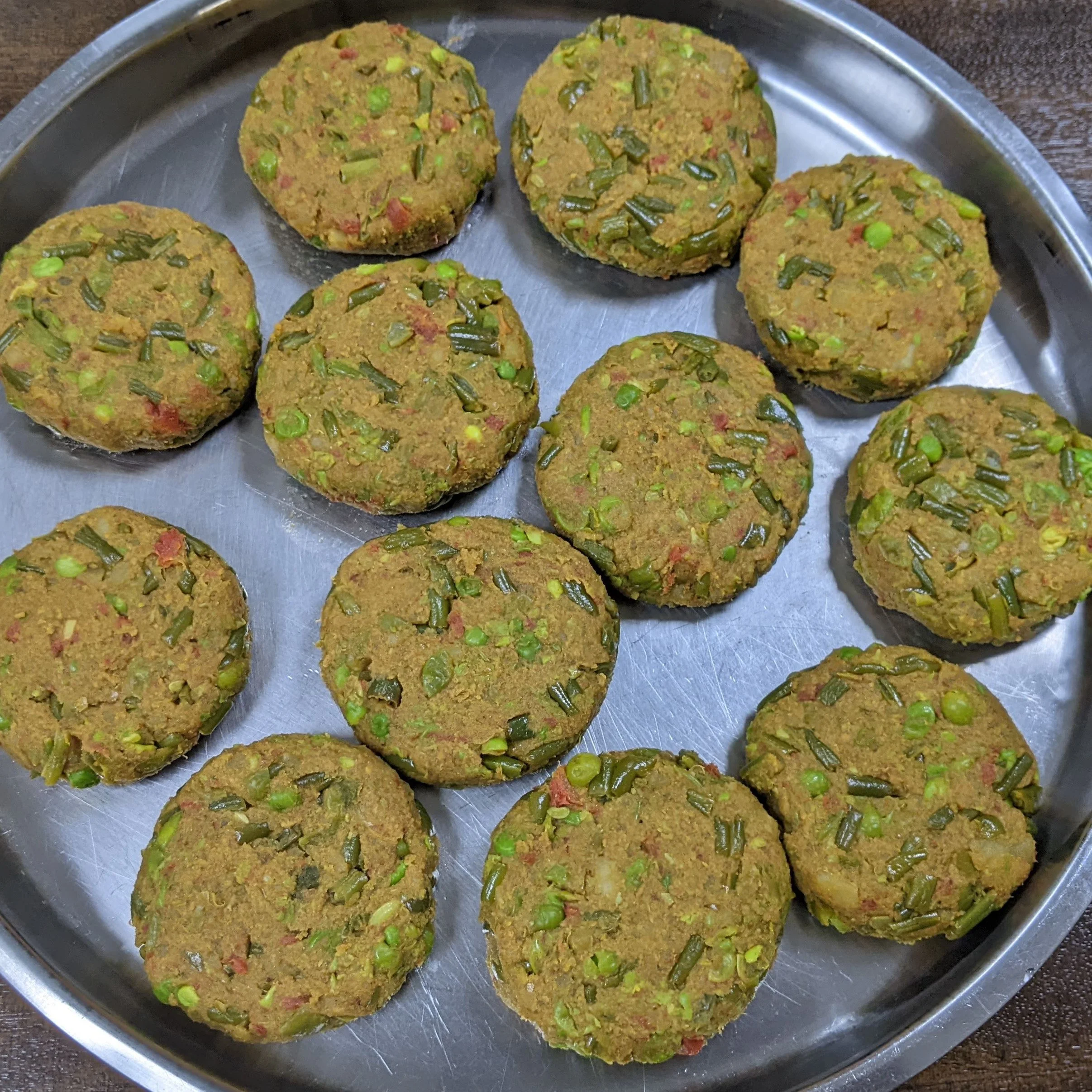 Mix the rice flour and roll into small thick round patties/ cutlets . Refrigerate for about 10 minutes.