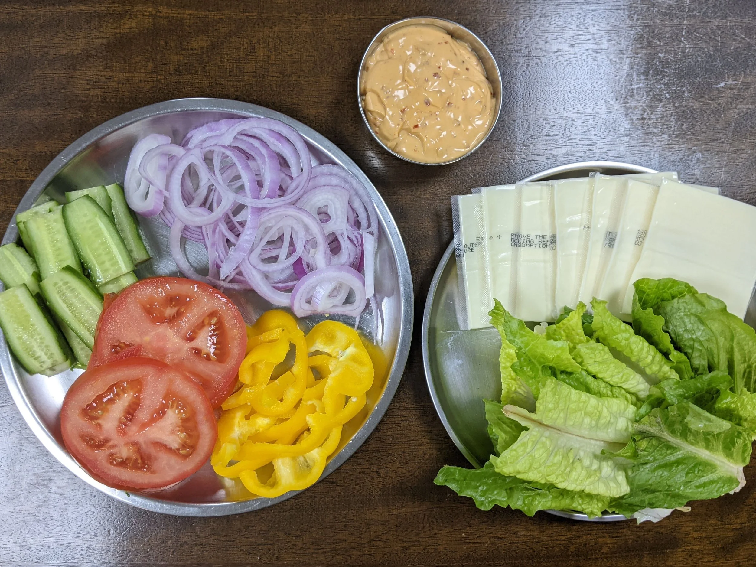 Take a burger bun, cut into half, spread mayonnaise on both sides of the bun. Take the base of the bun and on it place a lettuce leaf, then a onion ring, capsicum, tomato slice, cucumber slice then sprinkle some salt and pepper and top it with a patty. Cover it with a cheese slice and then close it with other side of the bun.