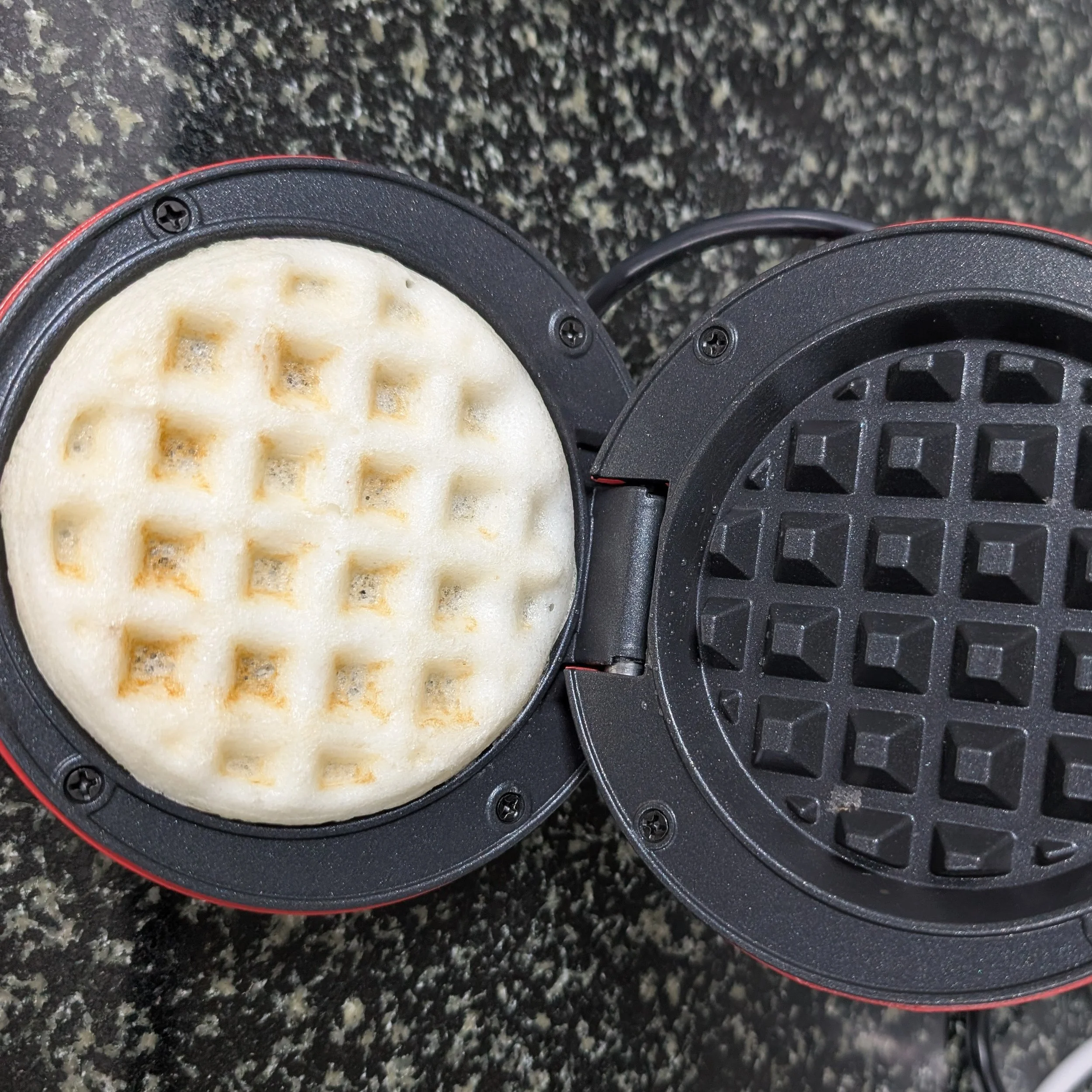 Grease and then heat a mini waffle maker then pour a ladle of the batter onto the waffle maker. Close and cook till slightly golden brown in colour on both sides .