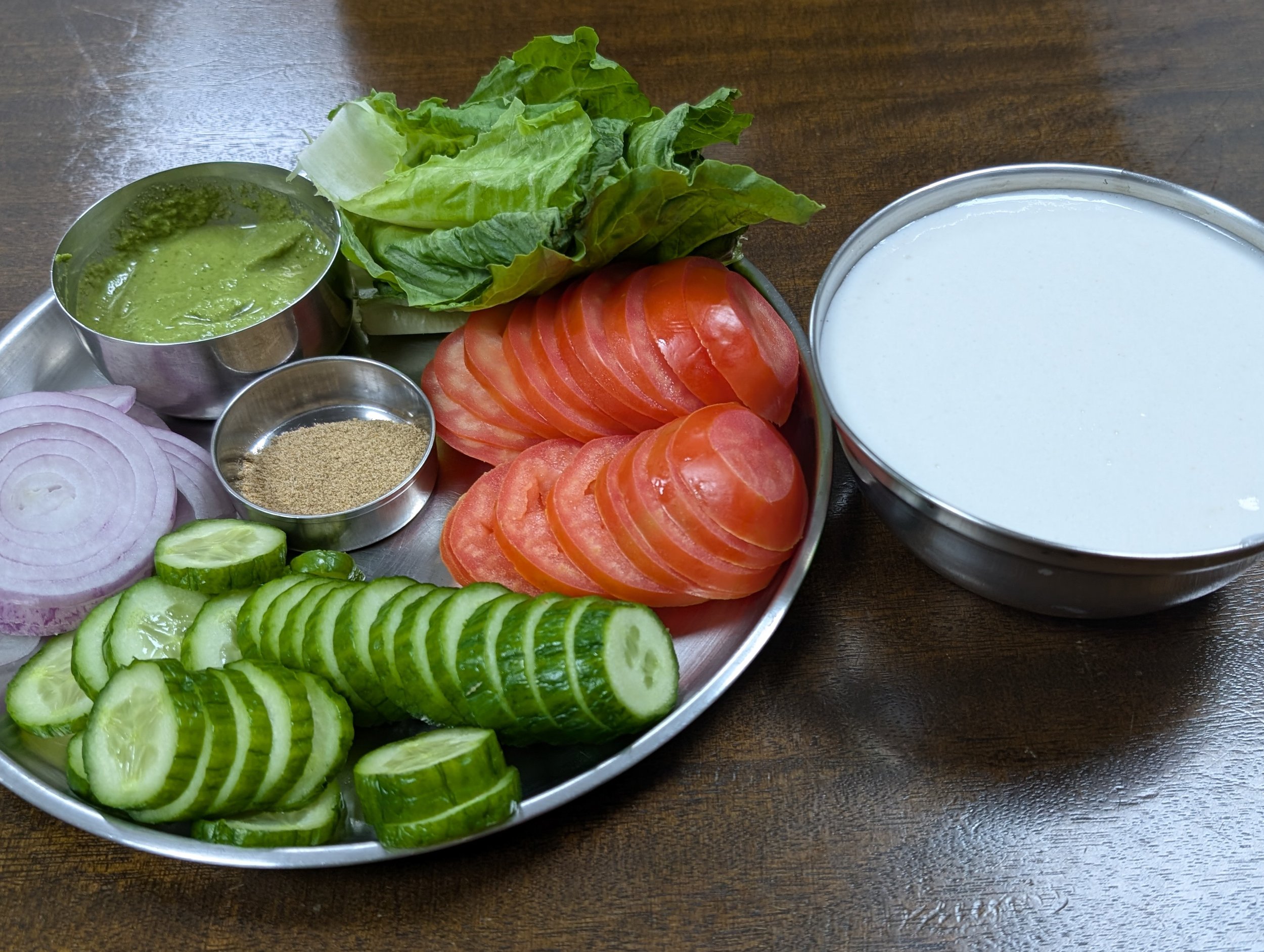 Wash al the veggies and slice into round the onion, cucumber and tomatoes thinly.